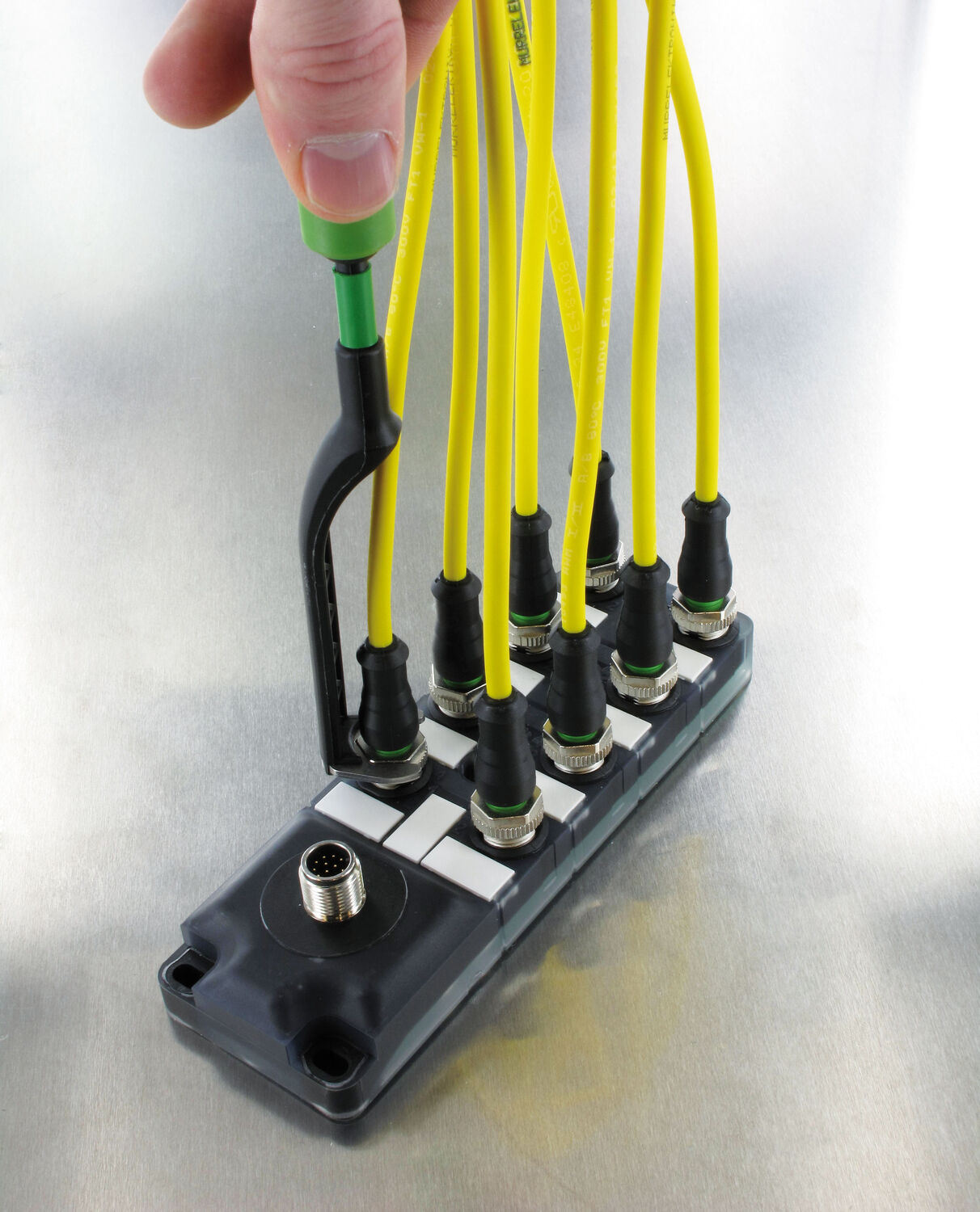 Murrelektronik’s unique torque wrench ensures connectors are tightened to precisely the right degree. Turn the wrench until it clicks and guarantee long-term, consistent connection quality with IP67 protection. The torque wrench is available in 6 sizes: M8, M8 Food & Bev., M12, M12 Food & Bev., M23 and 7/8" and works with all Murrelektronik connectors of the same size.